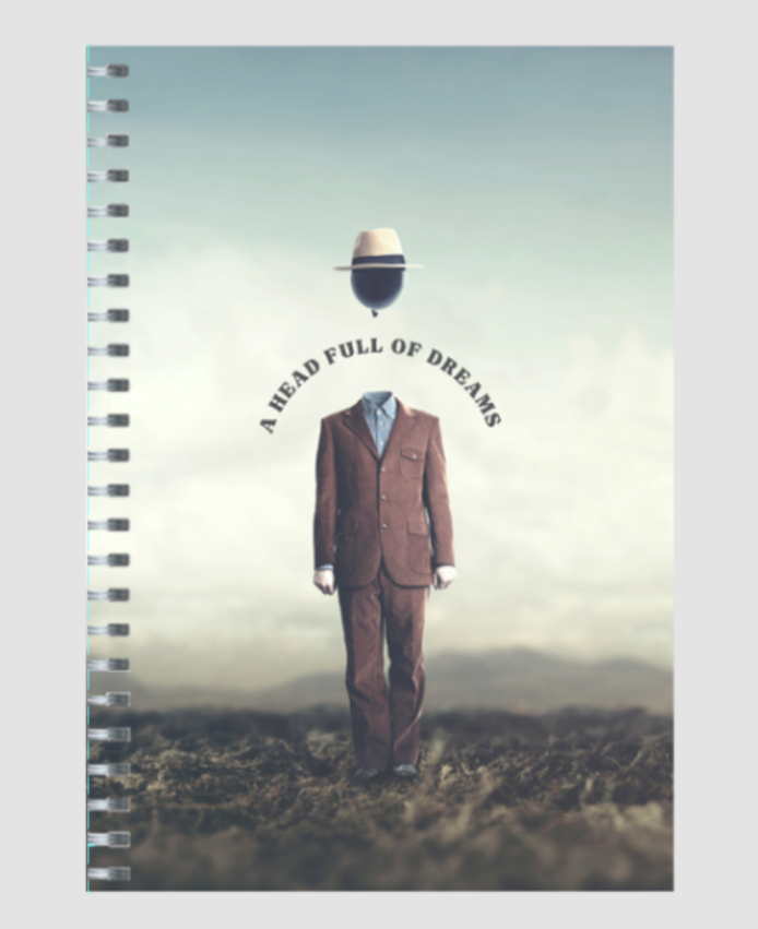 Bring creativity and inspiration to your notes with this A Head Full of Dreams ruled notepad (standard size). Featuring a surreal floating head design, where a man’s body walks on land while his head drifts above, with the phrase “A Head Full of Dreams” elegantly curved in the gap, this notepad is perfect for those who love music, art, and deep thoughts.