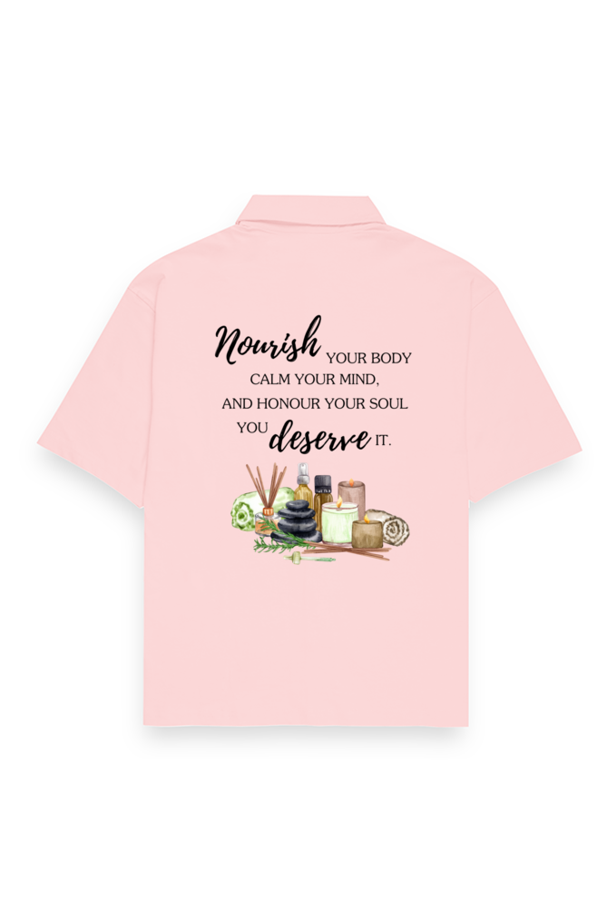 Elevate your everyday with the Nourish & Flourish Oversized Shirt, designed to inspire a balanced life. Featuring the calming reminder: