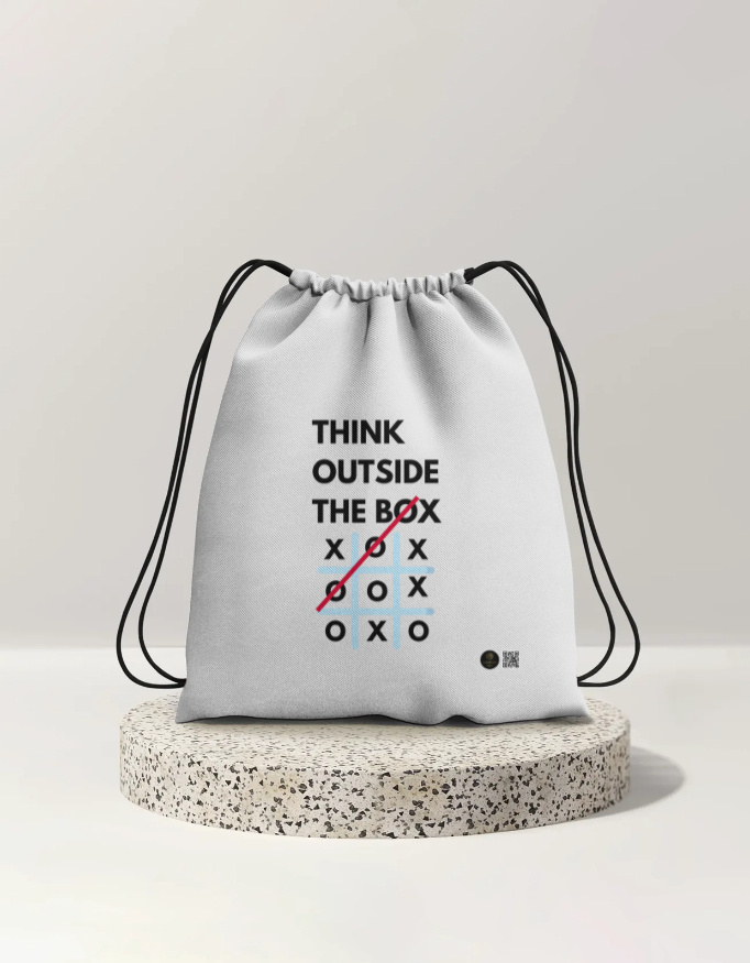 Design: Minimal yet bold “Think Outside the Box” graphic – ideal for movers, gym-goers, students, and creatives on the go.