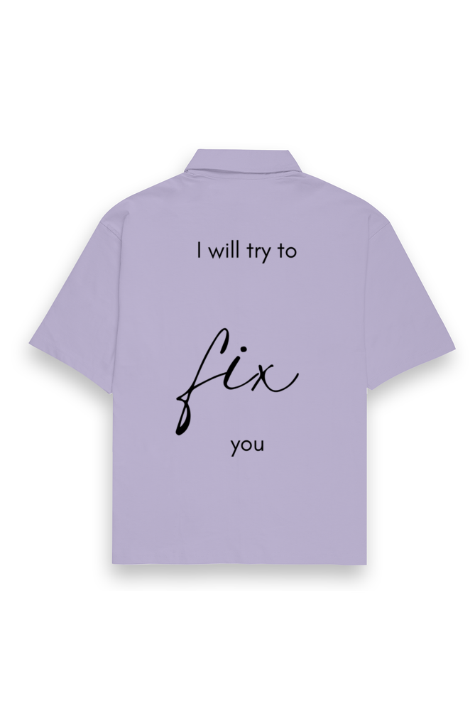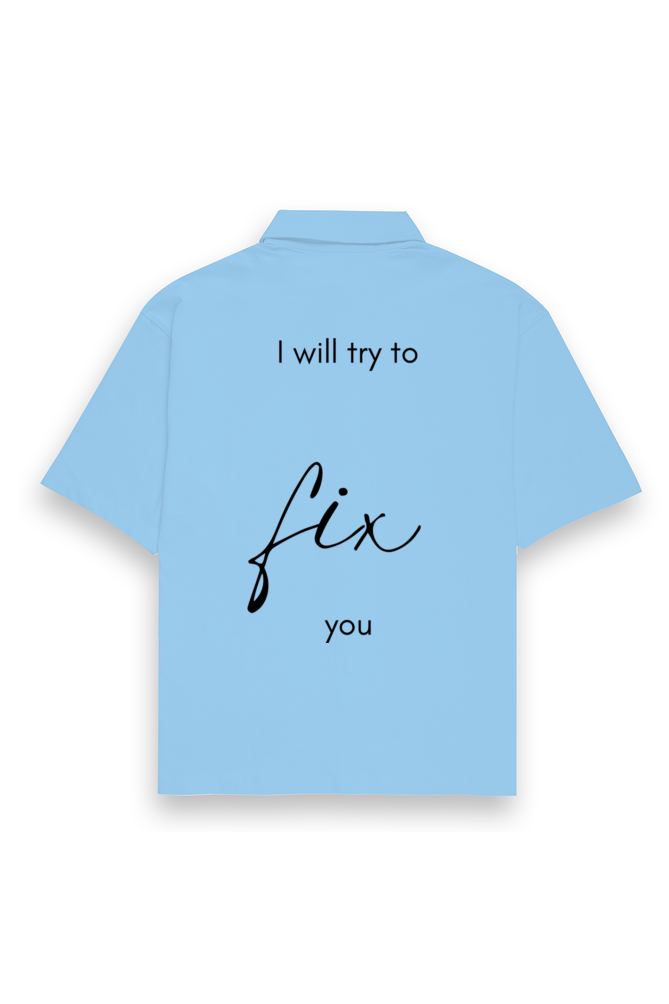 Embrace the timeless emotions of Coldplay’s “Fix You” with this stylish oversized shirt, designed for ultimate comfort and a meaningful aesthetic. Featuring the iconic phrase “I Will Try to Fix You,” with “Fix” emphasized in bold, this design captures the healing and uplifting essence of the song, making it a perfect statement piece for music lovers.