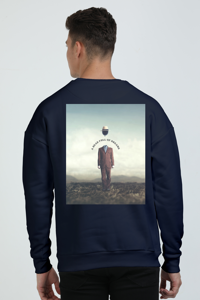 Stay cozy and stylish with this Oversized Sweatshirt (S-XXL), featuring a thought-provoking surreal design of a man walking on land with his floating head detached above, with the phrase “A Head Full of Dreams” elegantly curved in the gap. Designed for music lovers, dreamers, and art enthusiasts, this sweatshirt blends comfort with artistic expression.