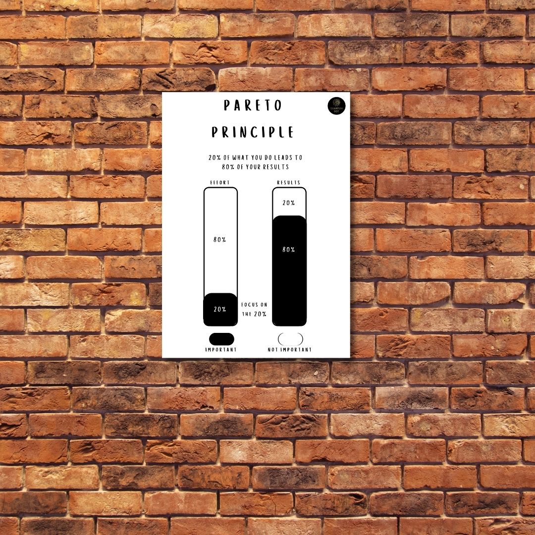 The Pareto Principle, also known as the 80/20 Rule, is a timeless framework used by business leaders and efficiency experts across the globe. This beautifully designed 42 x 59.4cm square-format wall art not only elevates your space but also your mindset — helping you stay focused on your highest-impact activities every single day.