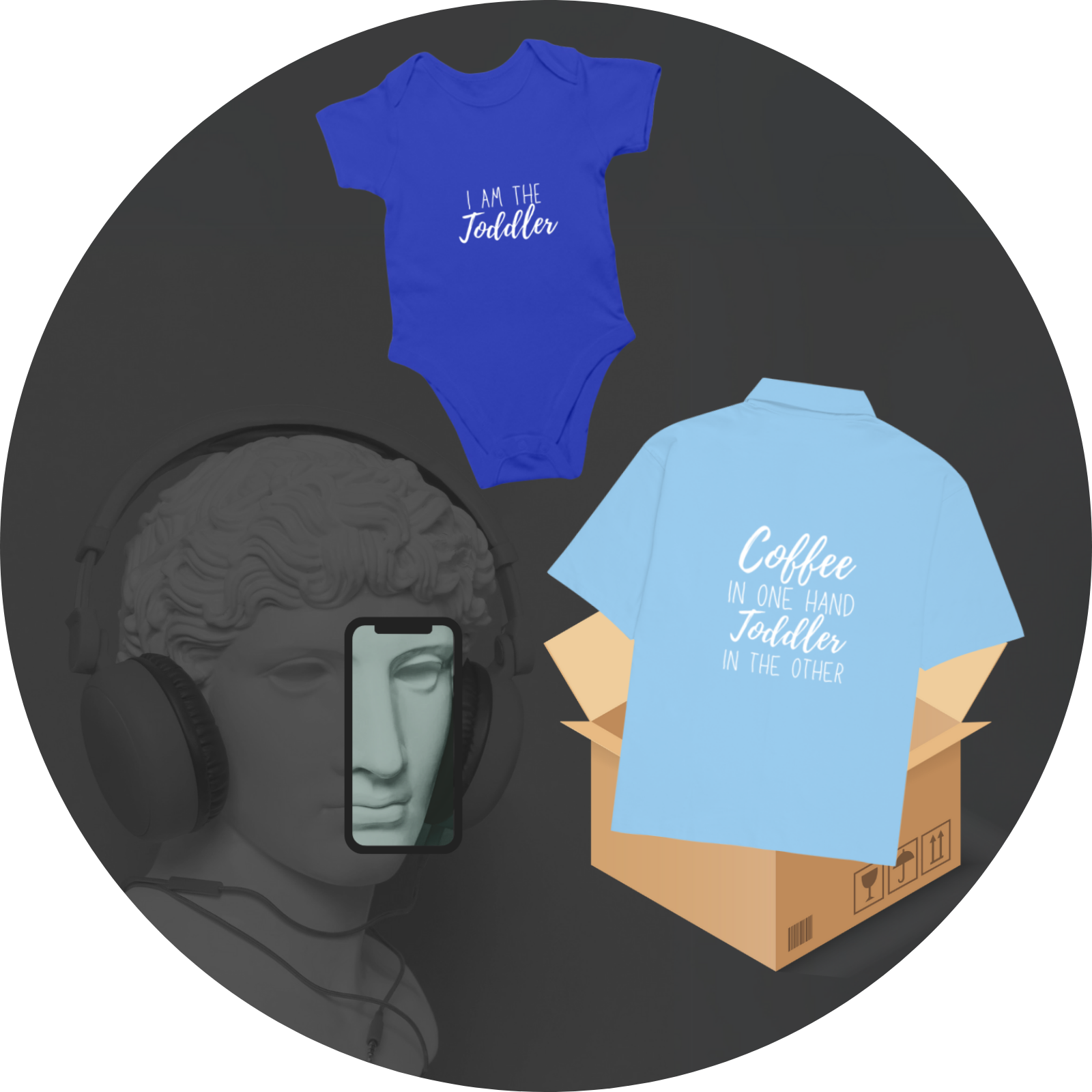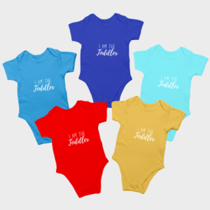 👶 Baby Onesie – Soft, comfortable, and breathable, printed with “I am the Toddler” for the little boss of the house. Available in vibrant royal blue to keep things stylish!