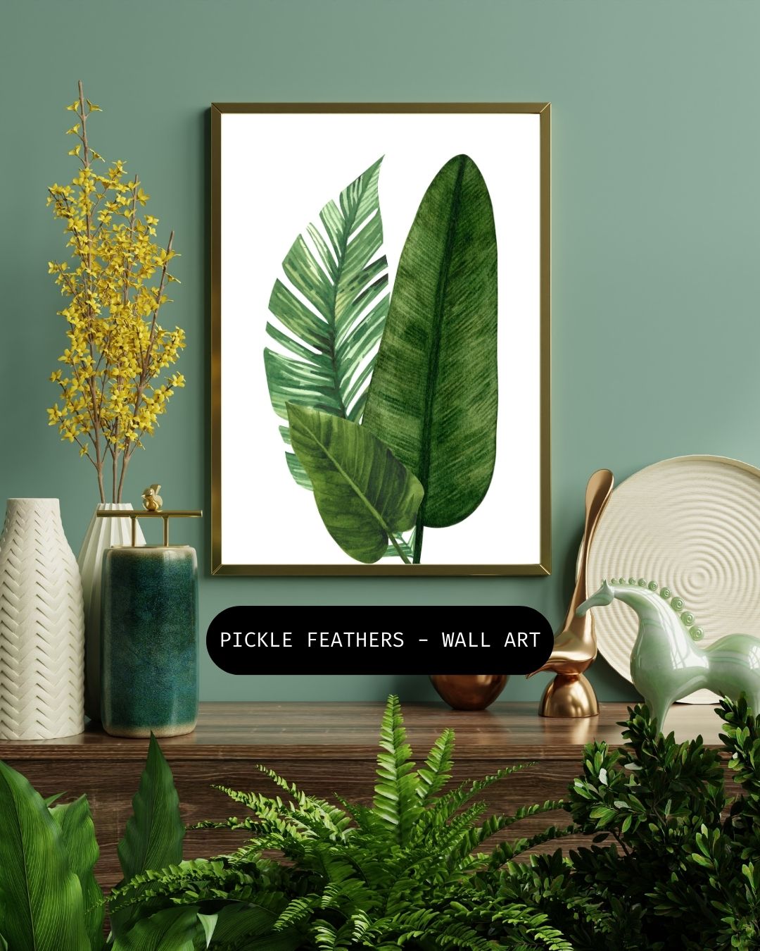 Add an artistic flair to your walls with Pickle Feathers, a unique take on leaf-inspired patterns that resemble delicate feathers. The intricate detailing and soothing green hues create a sense of movement and elegance.