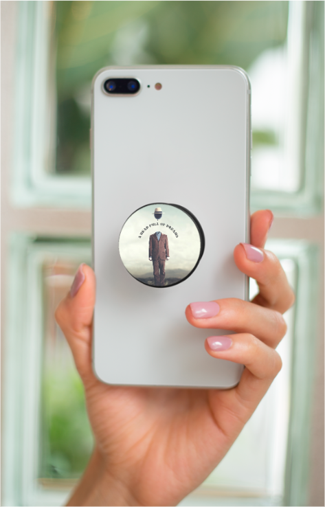 Enhance your phone’s grip and style with this A Head Full of Dreams PopGrip (4cm), featuring a surreal floating head design where a man’s body walks on land while his head drifts above, with the phrase “A Head Full of Dreams” elegantly curved in the gap. This unique design is perfect for music lovers, dreamers, and deep thinkers.