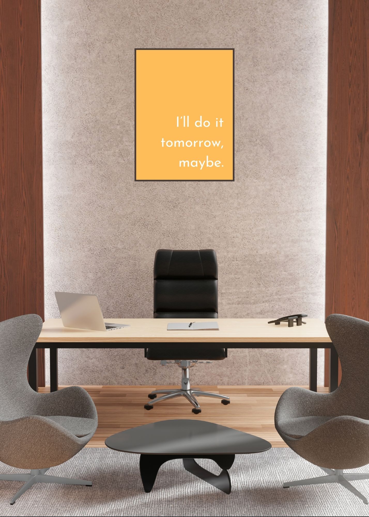 Embrace the art of procrastination with the Procrastination: The Art of Delay Wall Art. This humorous and relatable print will add a touch of wit and charm to any space. Whether you’re a chronic procrastinator or just appreciate the truth in a good laugh, this design serves as both a reminder and a conversation starter. Perfect for your home office, bedroom, or living area, it offers a playful nod to the universal experience of putting things off.
