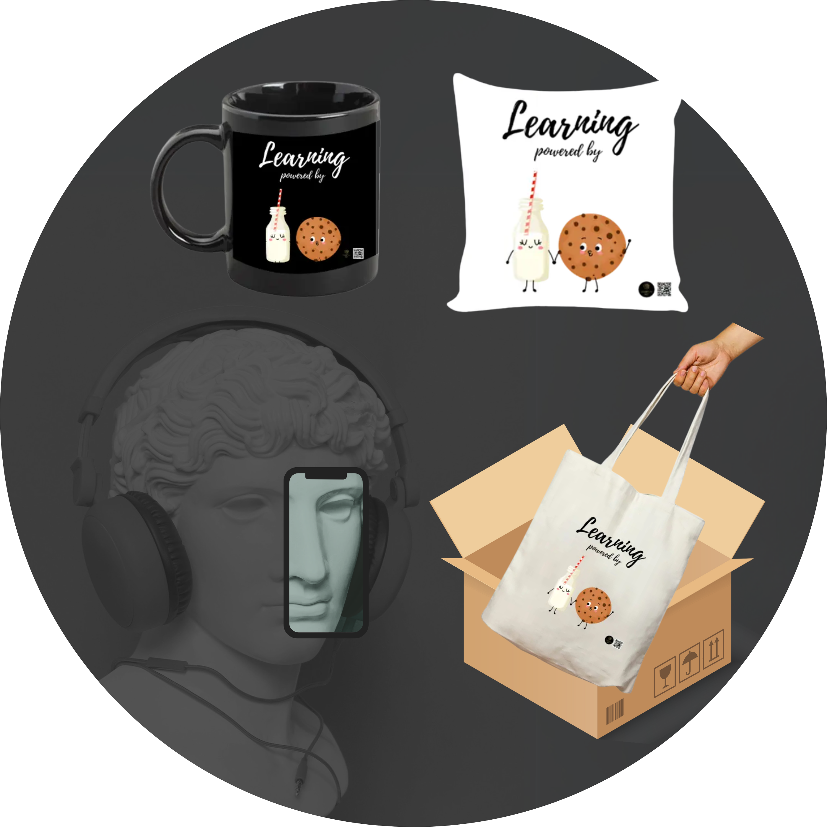 Fuel your passion for learning with the Quantum Bundle – “Brain Fuel” Collection, where a cheerful milk and cookie duo reminds you that a little sweetness and a lot of curiosity go a long way!