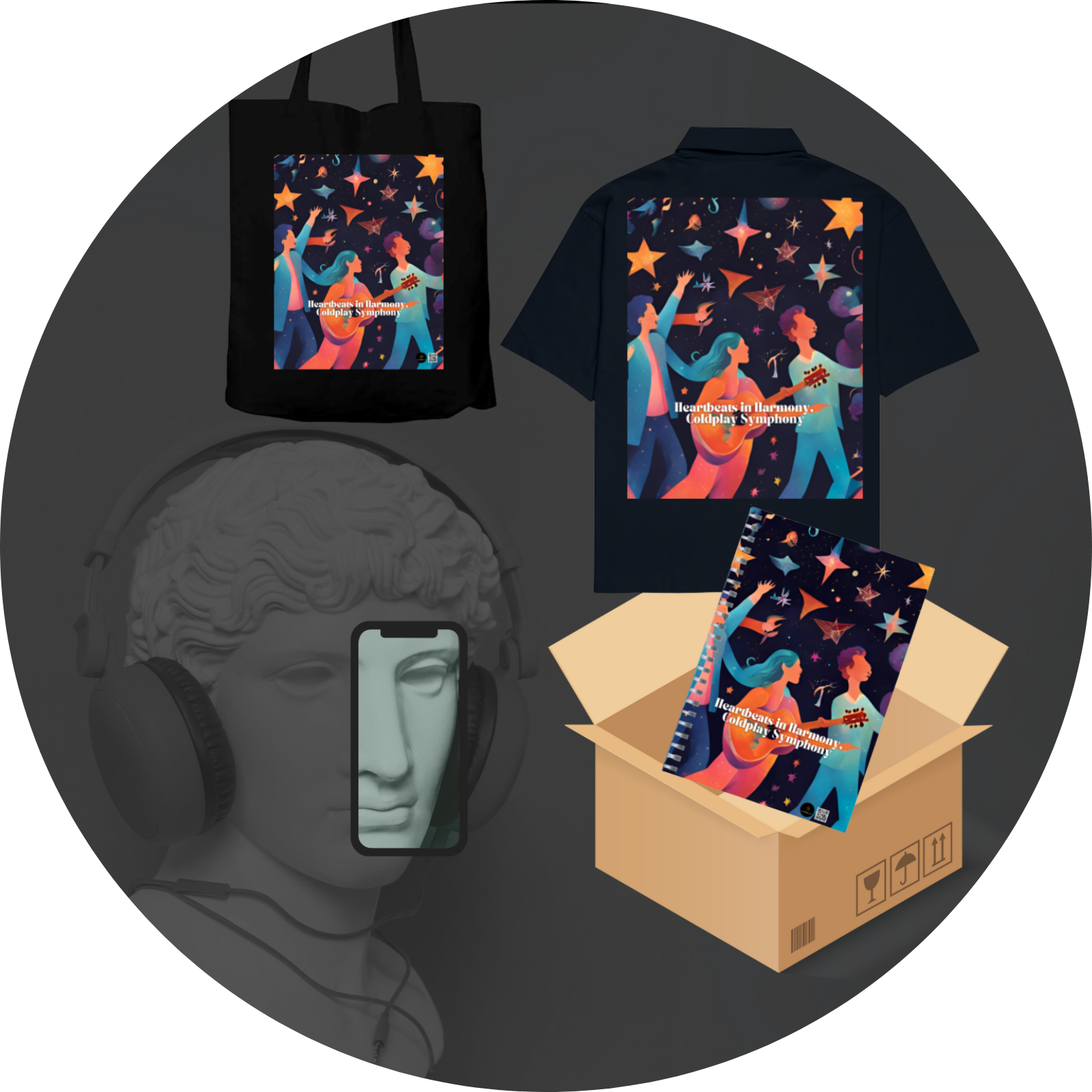 Step into a musical dreamscape with the Coldplay Symphony Quantum Bundle! This artistic and vibrant set features a tote bag, oversized shirt, and ruled notepad, all adorned with a dynamic illustration of musicians harmonizing under a cosmic night sky. A perfect blend of music, art, and fashion, this bundle is designed for those who live life in rhythm.