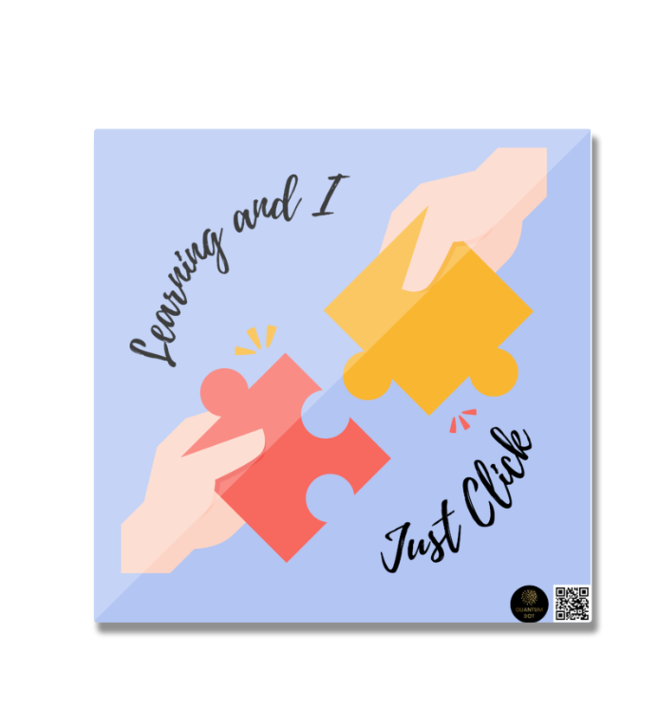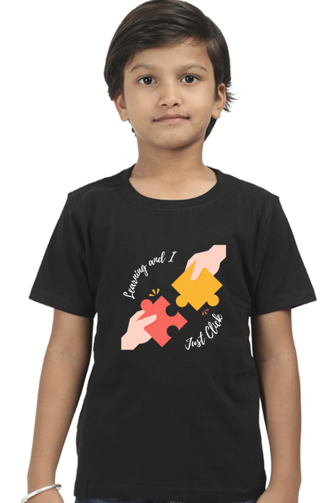 Celebrate those ‘aha!’ moments with the Quantum Bundle – “Learning and I Just Click” Collection! This vibrant and motivating set includes a glossy black coffee mug, a colourful fridge magnet, and a comfortable boys’ t-shirt — all featuring the cheerful puzzle-piece design symbolising how perfectly learning fits together.