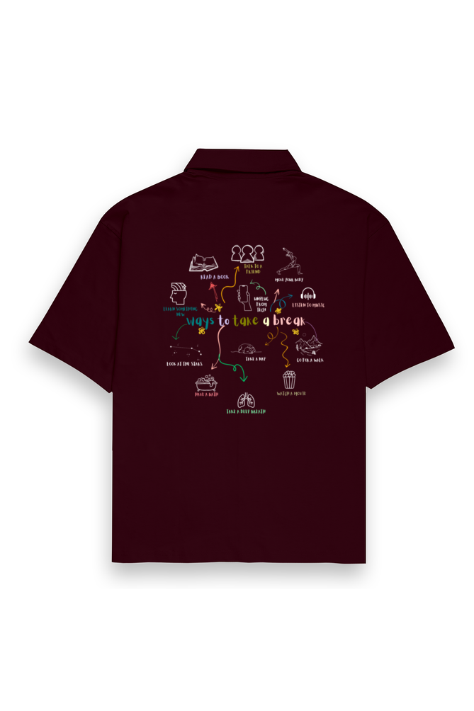👕 Oversized Shirt – with multicolour “Ways to Take a Break” flowchart