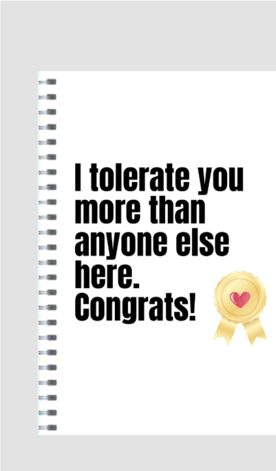 Stay organized with a touch of humor using this ruled notepad featuring the “I Tolerate You More Than Anyone Else Here. Congrats!” design. Perfect for jotting down notes, to-do lists, or daily reminders, this notepad adds a fun and sarcastic touch to your workspace. The high-quality ruled pages provide a smooth writing experience, making it an ideal desk essential for work, home, or school. A great gift for coworkers, friends, or anyone who appreciates a little workplace banter.