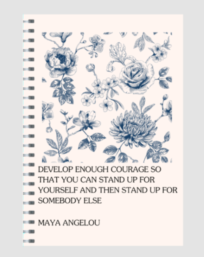 Write with purpose and empowerment using our “Strength in Courage” Ruled Notepad, featuring a delicate blue floral design and the inspiring quote:
