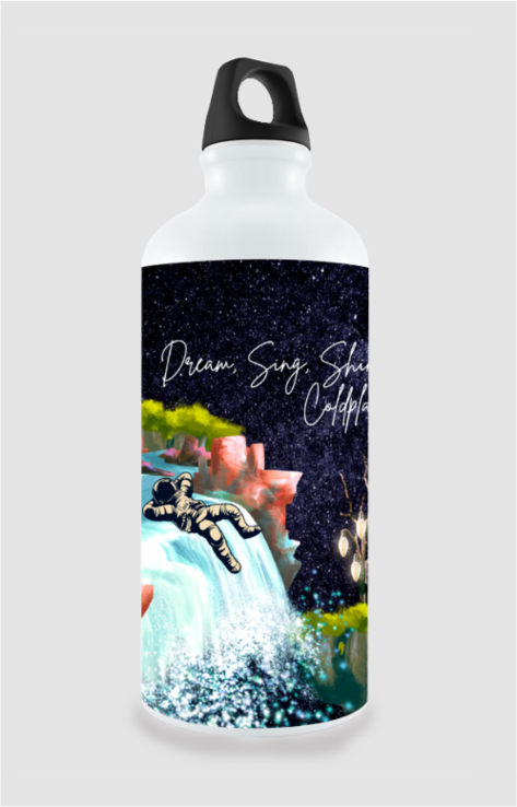 Sipper Bottle – Dream, Sing, Shine Coldplay | Astronaut & Waterfall Starry Design