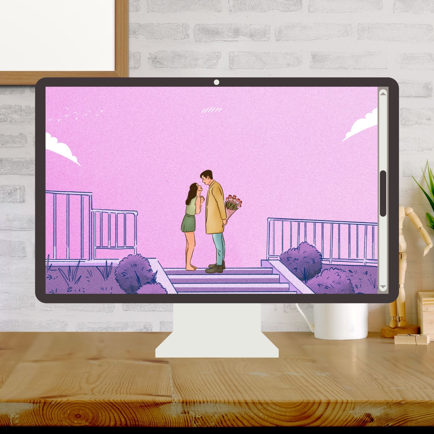 Charming Surprise Moment: The tender moment of the guy presenting the bouquet adds a sweet and romantic touch to your screen.