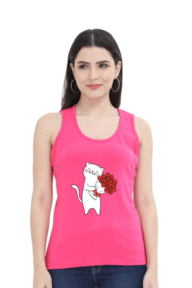 Bring a touch of charm and playfulness to your wardrobe with the “Love in Bloom” tank top. Featuring an adorable cat holding a bouquet of roses, this design is perfect for adding some love and fun to your casual outfit. Made from soft, breathable fabric, this tank top offers comfort and style for any season. Whether you’re lounging at home or out with friends, it’s a great choice for showcasing your love for cute designs.