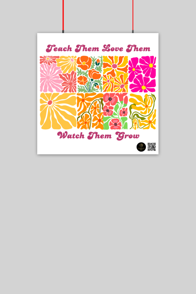 Brighten up any space with this motivational and vibrant 10×10-inch poster, featuring the uplifting words “Teach Them, Love Them, Watch Them Grow.” Designed with a stunning floral patchwork print, this poster is perfect for classrooms, nurseries, playrooms, or study spaces to inspire learning, kindness, and growth every day.