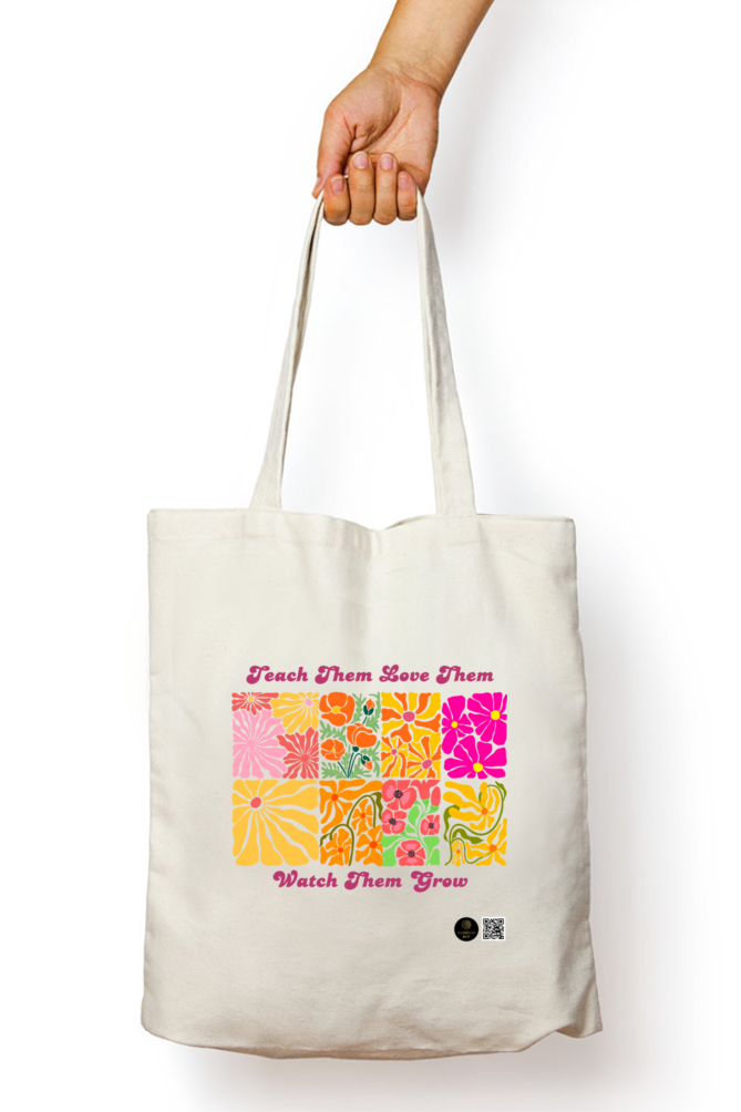 Carry inspiration wherever you go with this beautifully designed tote bag, featuring the uplifting message “Teach Them, Love Them, Watch Them Grow.” Adorned with a vibrant floral print, this tote is perfect for teachers, parents, and kids who believe in nurturing growth and creativity.