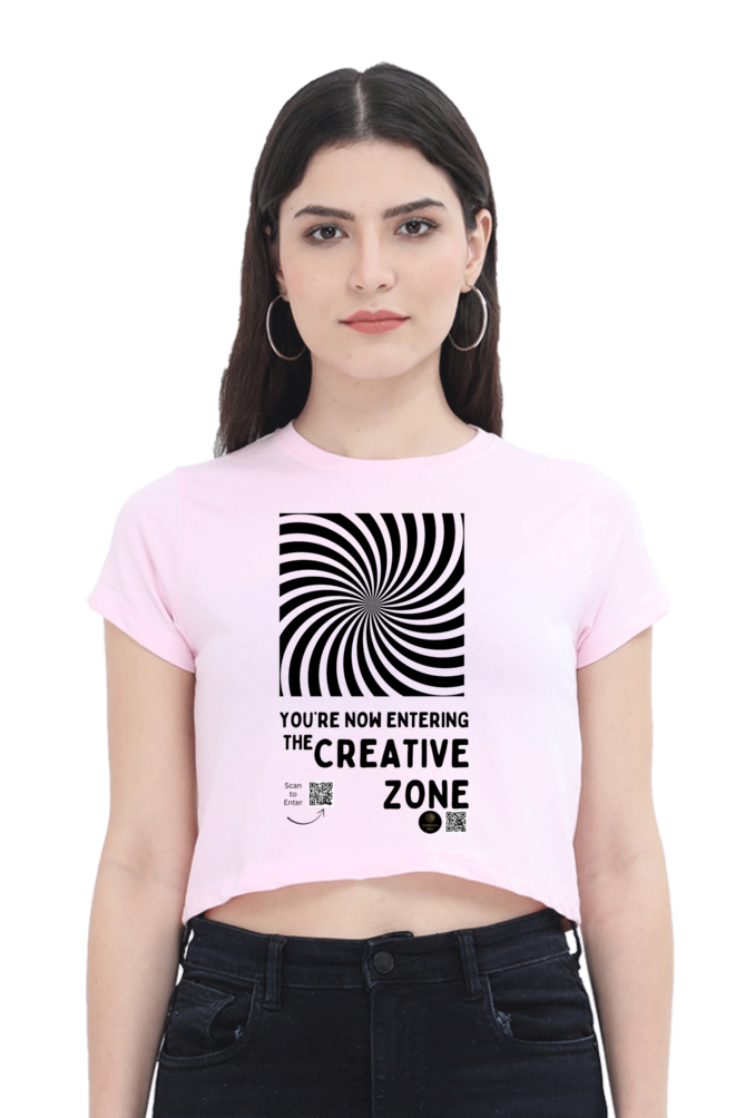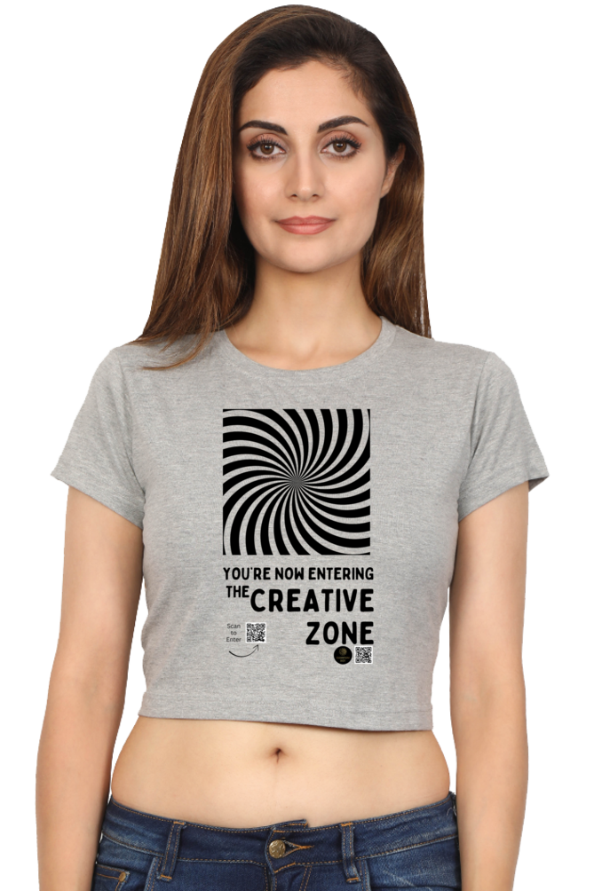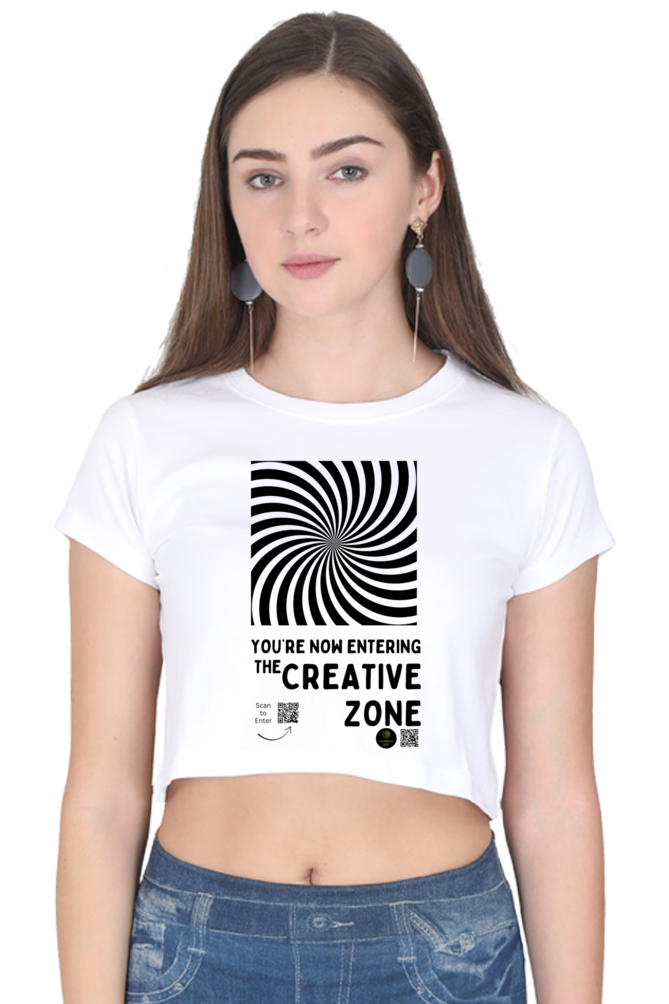 Step into your power with The Creative Zone crop top – where bold design meets creative energy! Featuring a striking black-and-white optical illusion and a motivational message, this women’s crop tee is perfect for those who live and breathe ideas. Whether you’re an artist, designer, student, or innovator, this top is your reminder that you’re always just one thought away from brilliance.