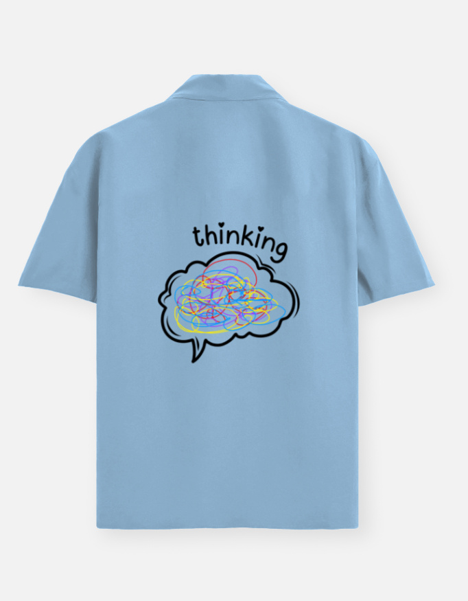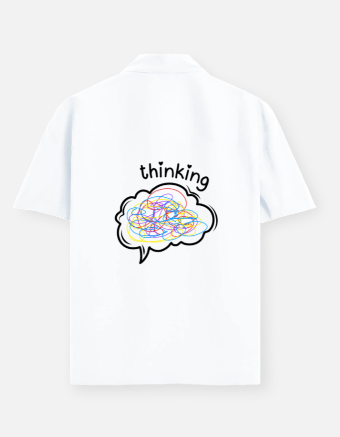 Design: Playful brain-doodle cloud graphic with “thinking” text on the back – an artsy expression of creativity and mood.