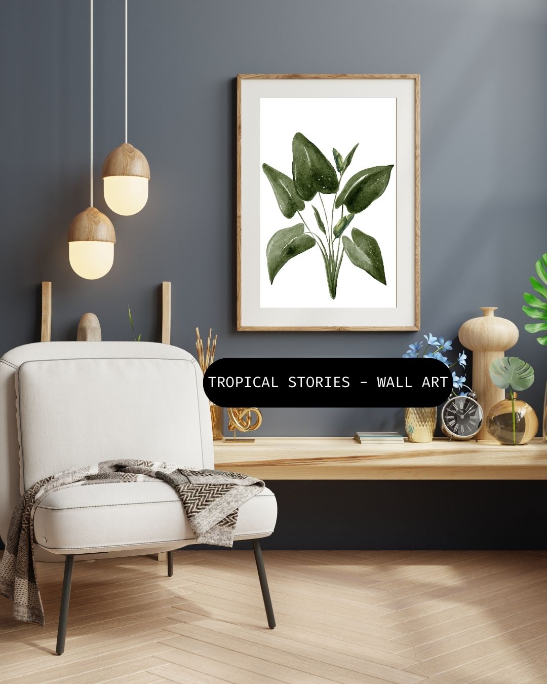 Bring the lushness of the tropics to your space with Tropical Stories, a vibrant depiction of bold, oversized tropical leaves. This artwork captures the lively greens of nature, with detailed veins and textures that pop against the subtle background. Perfect for those who love an exotic yet modern touch.
