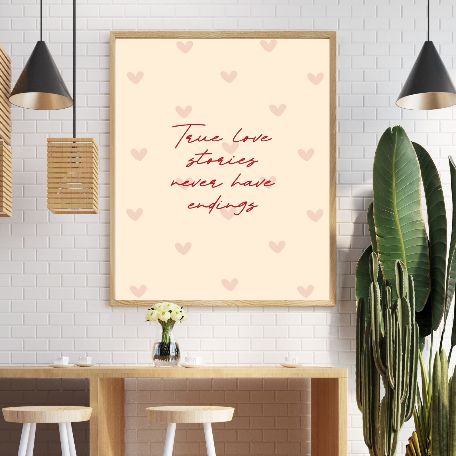 Celebrate the endless beauty of love with True Love Stories Never Have Endings – Romantic Quote Wall Art with Heart Background. A perfect way to keep love alive in your space forever.