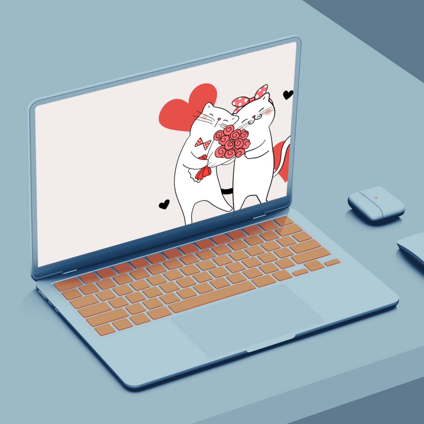 Add a touch of love and coziness to your workspace with the “Two Lovely Cats Together with a Bouquet” wallpaper. A perfect blend of charm and affection for your desktop!