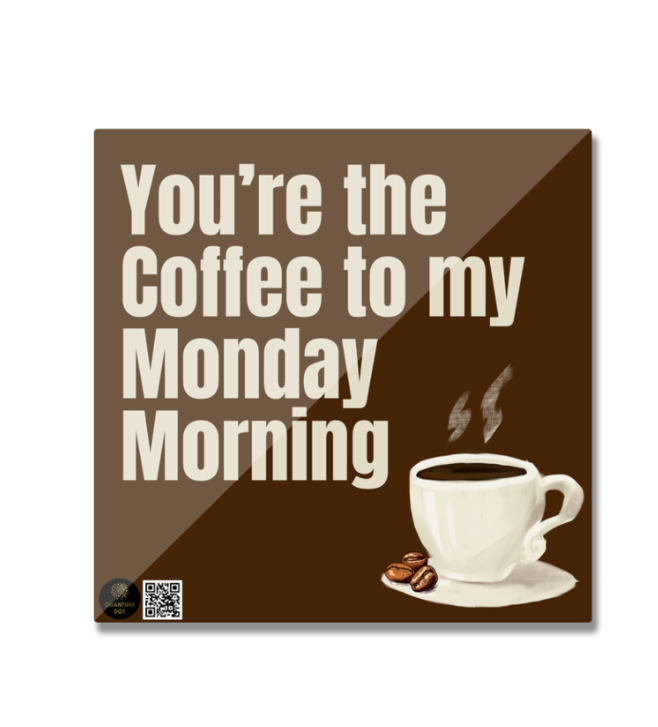 This unisex fridge magnet is a perfect blend of sweetness and humor for coffee lovers. Featuring the phrase “You’re the coffee to my Monday morning” alongside an illustration of a warm cup of coffee, it’s sure to brighten your kitchen or office space. The white square design makes it ideal for holding up notes, photos, or reminders while adding a cozy, caffeine-inspired touch to any metallic surface. A charming gift for coffee enthusiasts or a delightful addition to your own fridge.