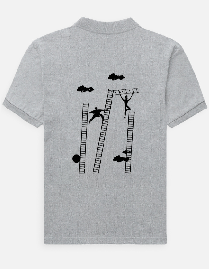 Step up your style with this unique “Up The Ladder” men’s polo featuring a bold and creative graphic on the back. Made from 100% cotton, 220 GSM Airtex fabric, it offers a textured finish that is breathable, cool, and comfortable all day long. Designed with a structured collar and cuff, this regular-fit polo brings a polished yet casual look that’s perfect for work, outings, or weekend wear.
