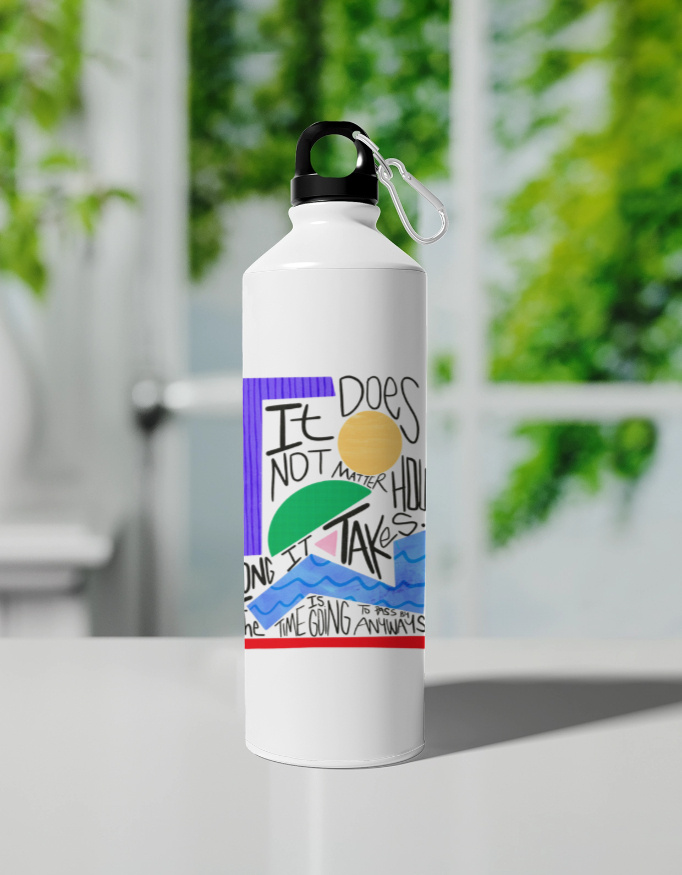 Stay inspired and hydrated with this 750 ml aluminum sipper bottle featuring a vibrant motivational design that reads “It does not matter how long it takes, the time is going anyways.” With a glossy finish and fade-proof print, this eco-friendly bottle is both lightweight and durable, making it the perfect companion for workouts, outdoor adventures, or everyday hydration on the go. Designed with a convenient clip cap for easy carrying, it blends functionality with a positive reminder to keep moving forward, no matter the pace.