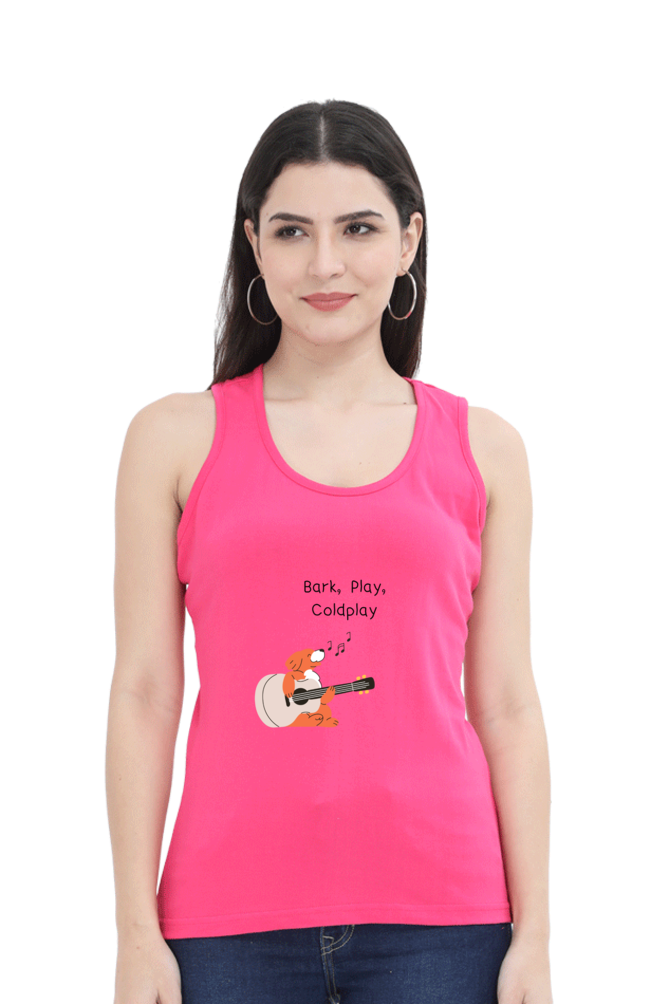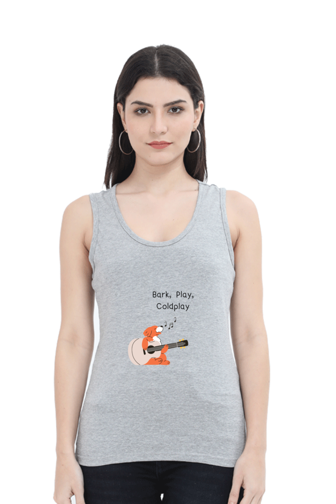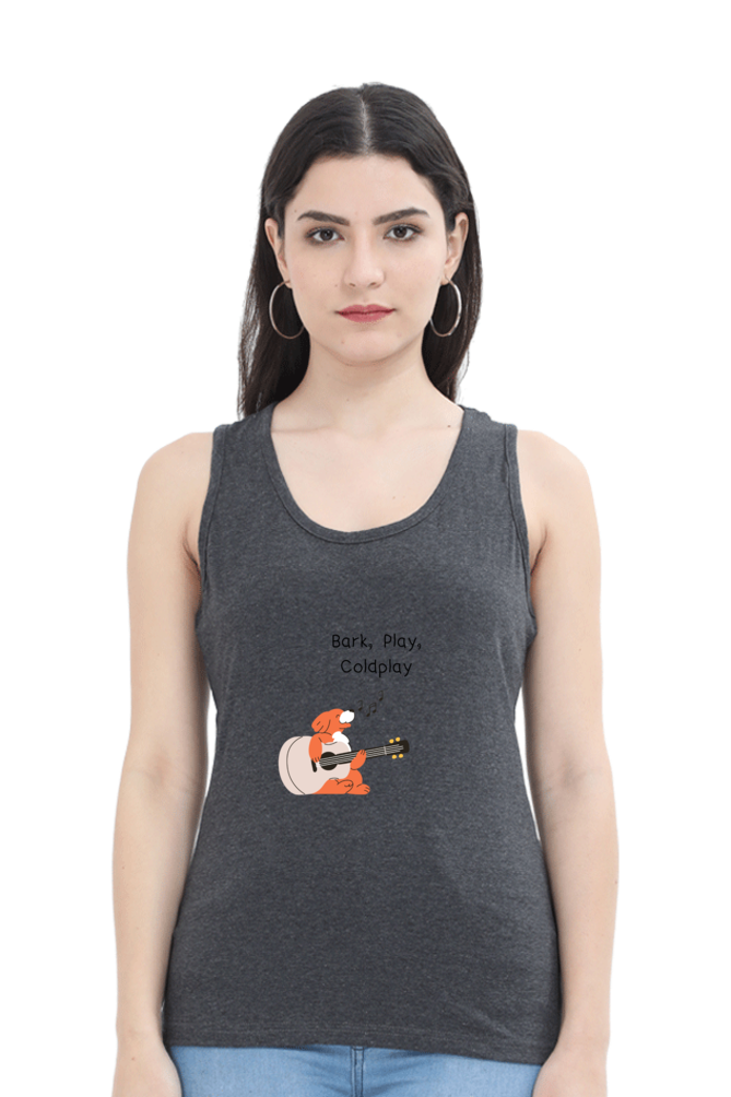 Express your love for music, playfulness, and Coldplay with this stylish and comfy women’s tank top, featuring an adorable dog joyfully playing a guitar and singing “Bark, Play, Coldplay.” Designed for music lovers and free spirits, this tank top blends fun, fashion, and comfort, making it the perfect go-to piece for casual days, workouts, or layering up in style.