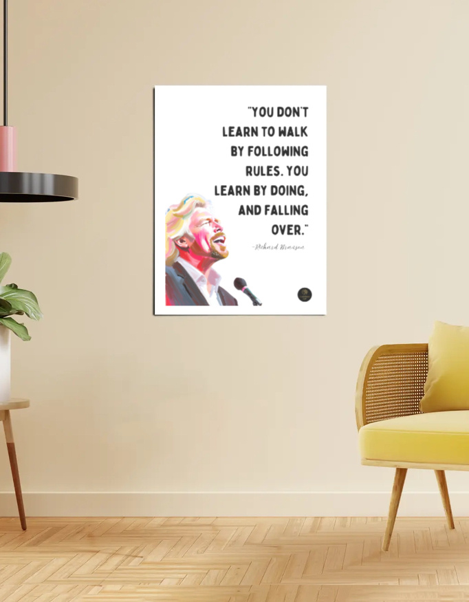 Celebrate boldness and resilience with this Richard Branson motivational framed poster, featuring his powerful words on learning through experience. A striking addition to offices, classrooms, or creative spaces, this poster inspires risk-taking and innovation. Perfect for entrepreneurs, startups, and leaders who thrive on action.